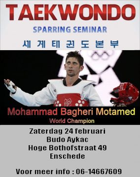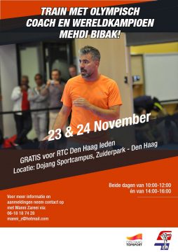 12:30 – 14:30 – Kyorugi training A-/B-klasse o.l.v. Habib Kazemi / Jari Dekker