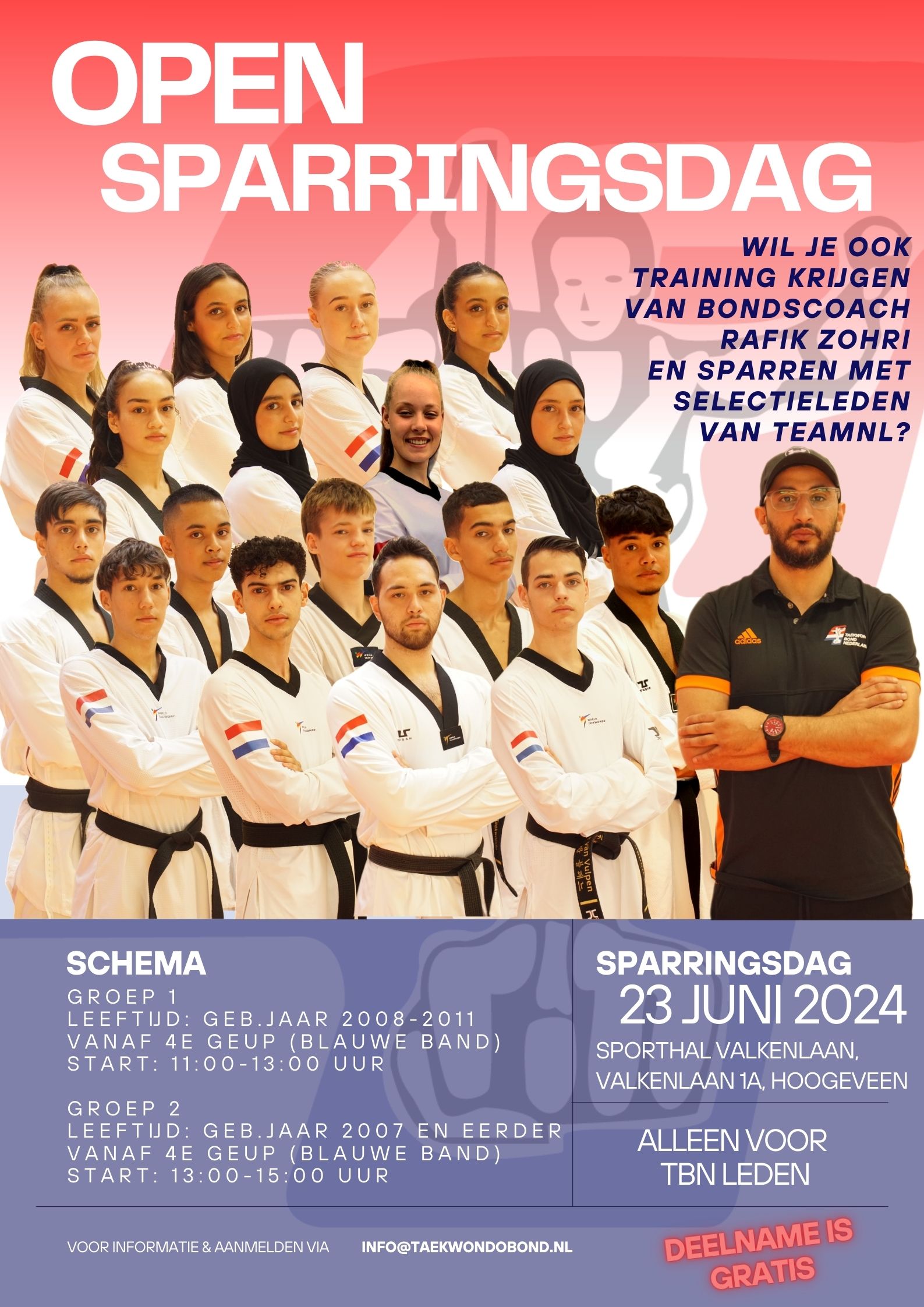 Op zondag 23 juni vond in Hoogeveen een succesvolle open sparring training plaats, georganiseerd door de Taekwondo Bond Nederland. Onder leiding van bondscoach Rafik Zohri en RTC trainer Giorgio Janmaat konden deelnemers in twee leeftijdsgroepen (2008-2011 en vanaf 2007) hun vaardigheden verbeteren en sparren met leden van de nationale selectie.