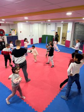 In totaal hebben er 2 dagen 2 groepen getraind in een van speciale matten voorziene accommodatie zodat er extra veilig kon worden gesport. Ondanks dat het wel gewoon flink sporten was, waren het leuke leerzame dagen voor de deelnemende kinderen waar ze spelenderwijs kennis hebben gemaakt met het sporten en specifiek het Taekwondo.