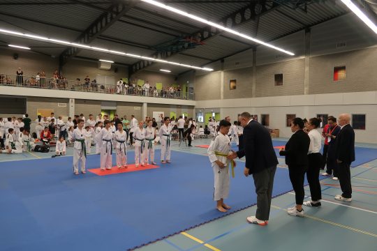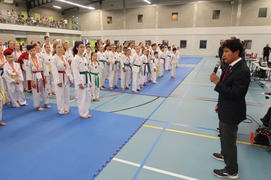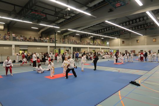Met vier velden en zo’n veertien actieve scheidsrechters, aangestuurd door juryvoorzitters Freddy Lufting en Roy Kawarmala, vond een vlotte doorloop van de wedstrijden plaats. Om 10.10 uur werd gestart en rond 16.00 uur vond op veld 4 de strijd om de laatste medailles plaats. Eerder op de dag ging de aandacht ook nog even uit naar Ezan Mozafarie, een 15-jarige asielzoeker uit Afghanistan die door Taekwondo Club Papendrecht wordt omarmd en daar sinds twee maanden meedoet met de lessen. Buiten deelneming toonde hij de 3e en 4e Taegeuk op verrassend hoog niveau. Hiermee werd onderstreept dat World Taekwondo een mondiale sport is die wereldwijd openstaat voor iedereen. Afsluitend werden nog de trofeeën uitgereikt aan taekwondo teams met de hoogste medaille scores in het algemeen klassement. De 3e plaats was voor TS Lelystad, 2e werd Ki-Sa en 1e werd Tapia.