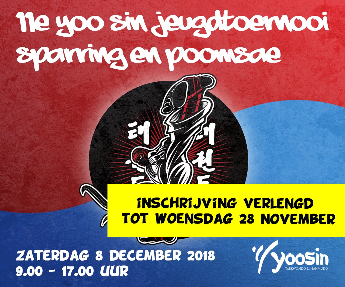 De inschrijfdatum voor het Yoo-Sin jeugdtoernooi is verlengd t/m woensdag 28 november.