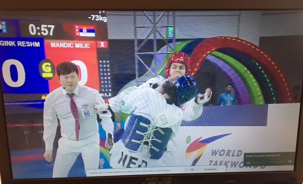 Na een dag eerder met uitstekende partijen de halve finales te hebben bereikt moest met een 3-3 stand na de reguliere ronden uiteindelijk een beslissende golden point ronde uitsluitsel geven. In deze allesbeslissende ronde wist de Servische tegenstandster Milica Mandic als eerste een treffer te maken en zich dus te plaatsen voor de eindstrijd in de klasse dames -73kg. In de finale pakte Mandic de wereldtitel door met 17-13 te winnen van Hyeri Oh uit Korea.