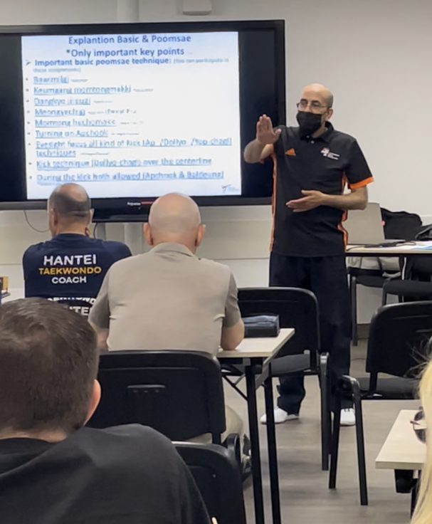 Zondag 15 mei vond in Sport- en evenementencomplex Merwestein een stijljurycursus plaats. Onder leiding van nationaal stijljury coördinator Mustapha Moutarazak namen totaal zo’n 30 taekwondoka’s deel aan de applicatiecursus of aan de opleiding voor de D- of E-licentie.