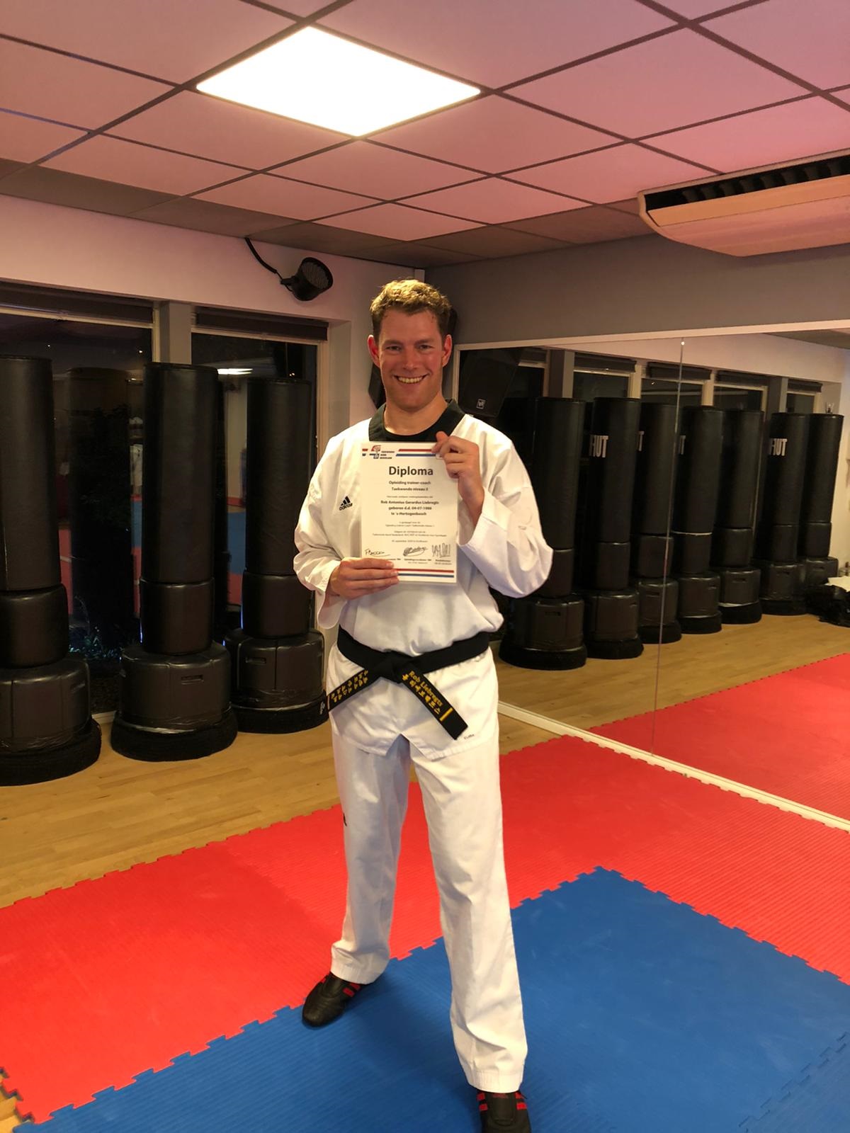Afgelopen maand heeft Rob Liebregts uit Den Bosch de opleiding Taekwondotrainer niveau 3 met goed gevolg afgerond. Wegens de Corona-crisis is het praktijkexamen met behulp van video opgenomen en vervolgens door de examinatoren beoordeeld. Het daaropvolgende reflectiegesprek met de kandidaat vond eveneens online plaats.