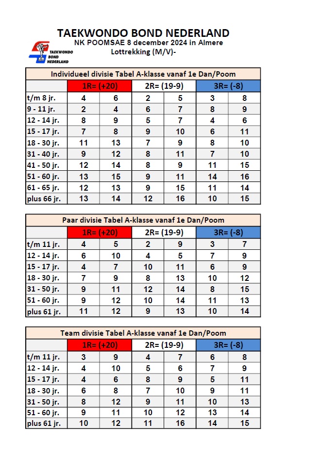 Lottrekking NK Poomsae 2024: A-klasse individueel, paar en team