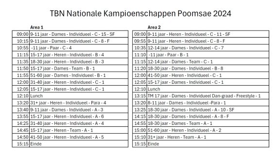 Link: Tijdschema (indicatief) NK Poomsae 2024