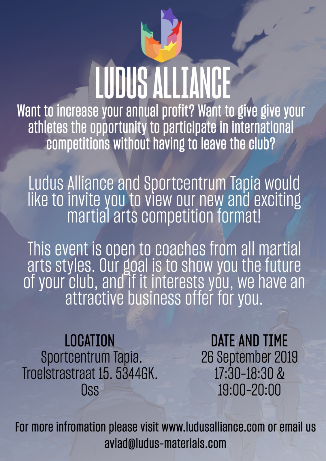 Op 26 september kunt u kennis maken met een nieuwe manier van trainen, competitie en ledenbehoud. Ludus Alliance combineert gaming en vechtsporten.