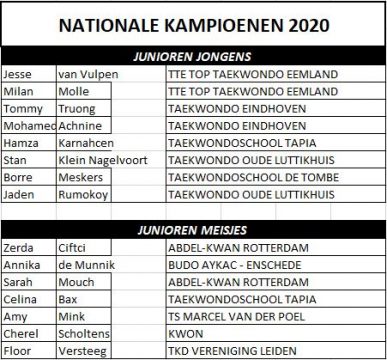 Voor een volledig overzicht van alle uitslagen zie: RESULTATEN NK SPARREN 2020