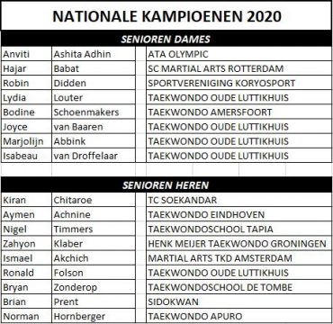 Overall winnaar werd Taekwondo Oude Luttikhuis uit Almelo, tweede en derde werden respectievelijk Abdel-Kwan Rotterdam en Taekwondoschool De Tombe uit Hazerswoude Rijndijk.