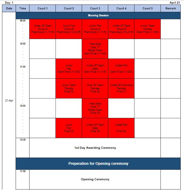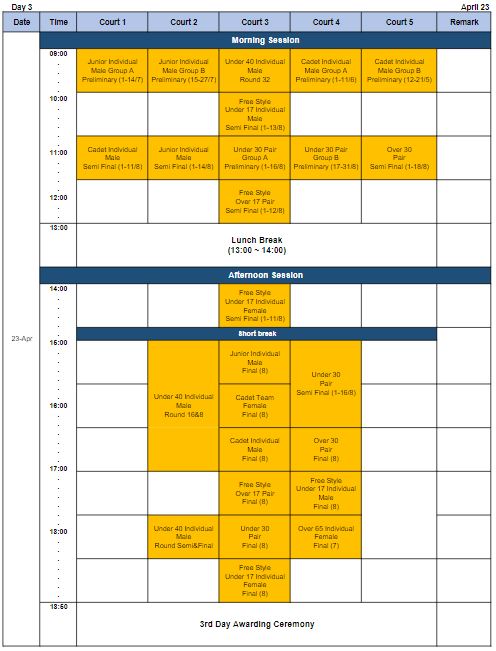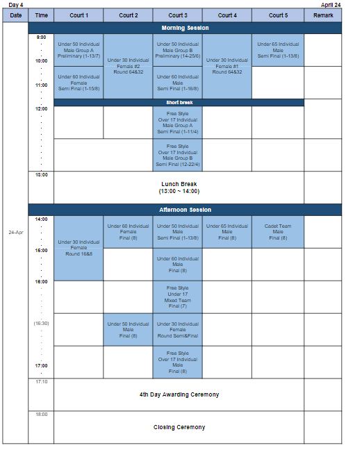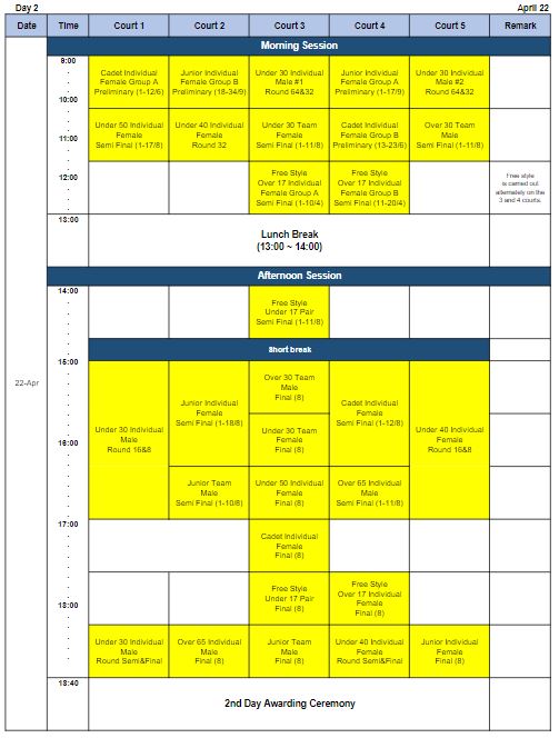 - Schema dag 2 – Female kadet, Male under 30, Female team under 30, Male over 65