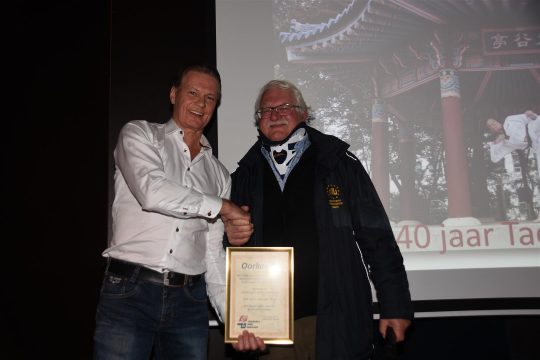 Hoofdtrainer en boegbeeld van de vereniging Gerard van den Berg werd voor zijn verdiensten jegens de Taekwondo Bond Nederland en de Taekwondosport door bondsvoorzitter Fred Buitenhuis gehuldigd met het bondsridderschap en de bijbehorende oorkonde.
